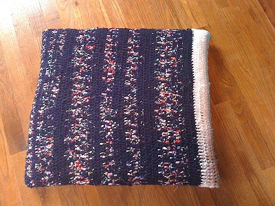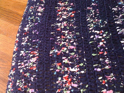 連日古着を細いひも状に割いては、それでバスマットや玄関マットなど、せっせと編んでおります。