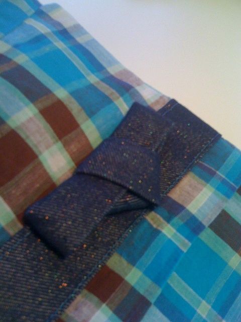 (帯の端は差し込んでいるだけなので、ほどけないように、端も一緒に縫い付けます。)
