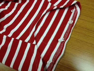 フードにはタグとボタンを縫い付けてアレンジです。