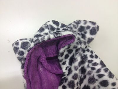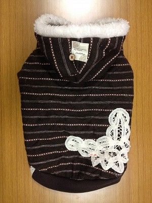 フードにファーを挟んで、背中にはレースのモチーフを縫い付け。