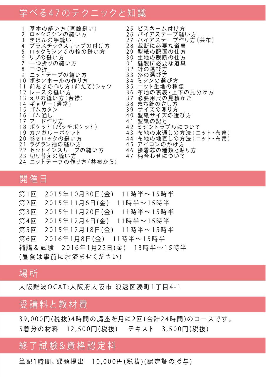 4時間の講座で1着を作っていただきますが、