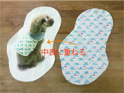 ③表面を下にした裏地と重ねて周囲を大まかに裁断